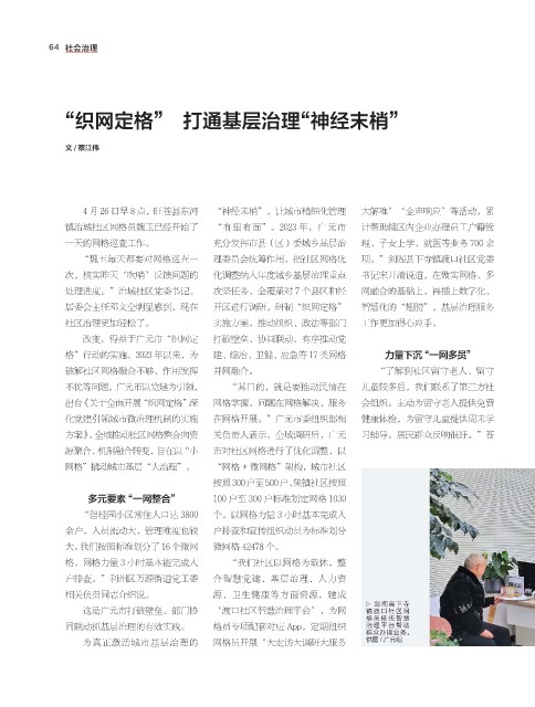格”行动的实施。2023 年以来,为 建、综治、卫健、应急等 17 类网格 力量下沉“一网多员”