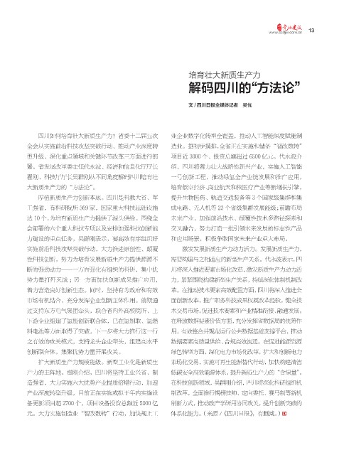 元。大力实施制造业“智改数转”行动,加快规上工 体系化能力。(来源 /《四川日报》,有删减。)