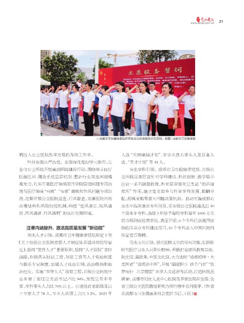 与联系专家制度,加强人才政治引领、政治吸纳和政 美医者”“成都名中医”,开展“温暖医事 妙手白衣”“筑