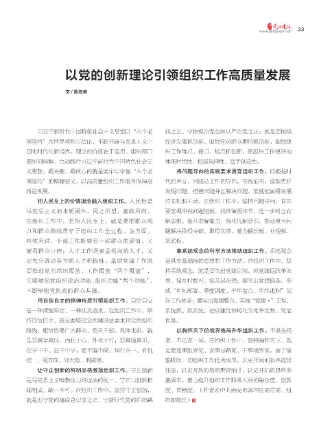 以党的创新理论引领组织工作高质量发展