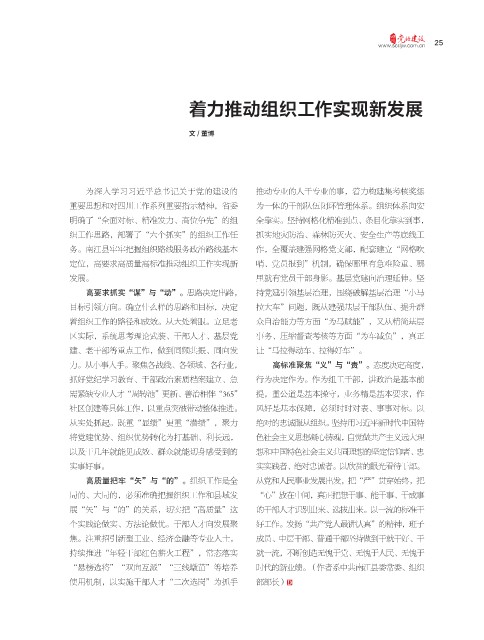 “悬榜选将”“双向互派”“三线墩苗”等培养 时代的新业绩。(作者系中共南江县委常委、组织