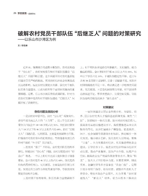 破解农村党员干部队伍 “后继乏人”问题的对策研究
