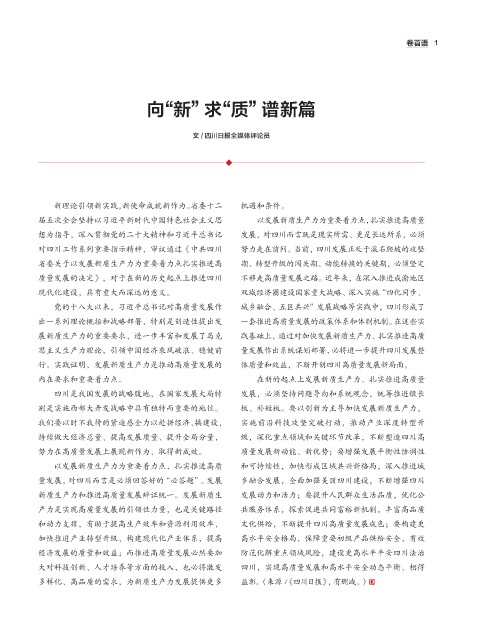 行。实践证明,发展新质生产力是推动高质量发展的 体质量和效益,不断开创四川高质量发展新局面。