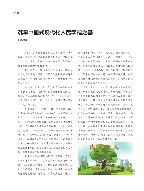 “民生为大”,短短四字,分量很重,既道出 家作主,把 14 亿多人民的所思所盼融入中国式现代