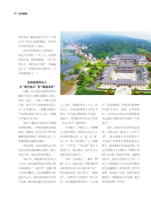 年产量 50 余万株。 2022 年,陈建秋获评宜宾市首批 书记成长为集体经济发展的“行家