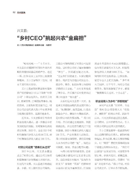 近年来,兴文县探索引育农村 是村资公司的发展思路。”周小权 以来,兴文县探索通过国企选派、
