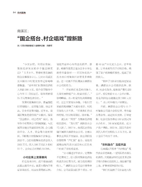 属国企建立利益联结机制,合力撬 司入驻了。2017 年,南溪区出资组 户农户增收。2023 年,园区内农村