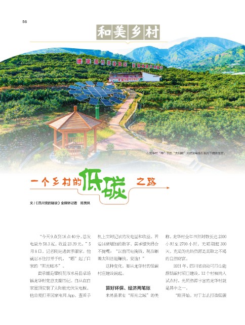 家的“阳光账本”。 这种变化,要从龙华村的低碳 2021 年,四川省启动可再生能