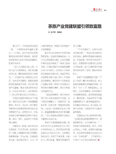 包。”采茶能手汪玉碧是灵山村村 质富硒茶 5000 余亩。同时,打造精 茶旅产业党建联盟打造的“产