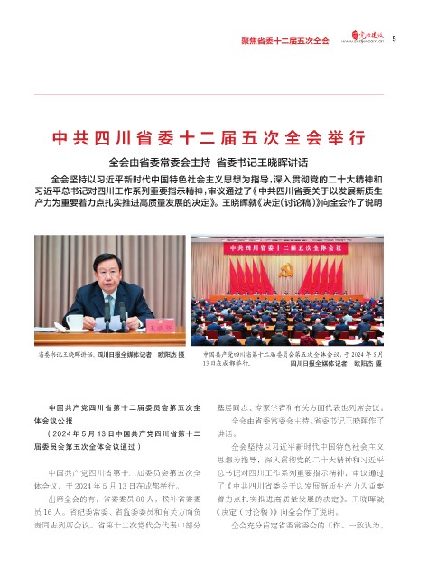 聚焦省委十二届五次全会 www.scdjw.com.cn 5