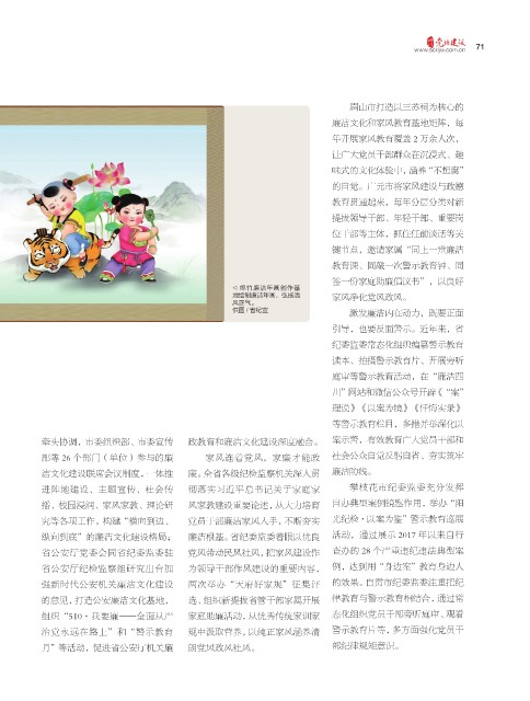地绘制廉洁年画,弘扬清 家风净化党风政风。