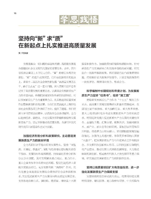 全面建设社会主义现代化国家的首要任务。去年,四川 新质生产力发展新特点和实践中面临的新问题,研究