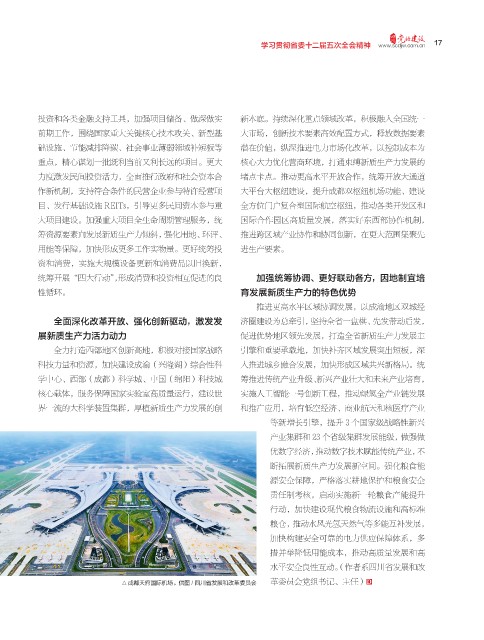 作新机制,支持符合条件的民营企业参与特许经营项 大平台大枢纽建设,提升成都双枢纽机场功能、建设