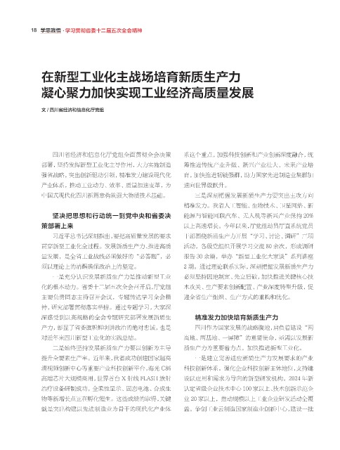 中国式现代化四川新篇章构筑强大物质技术基础。 三是深刻把握发展新质生产力要突出主攻方向