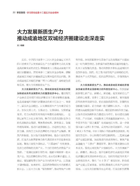 势见效,要大力发展新质生产力。 大力发展新质生产力,推动成渝地区双城经济圈