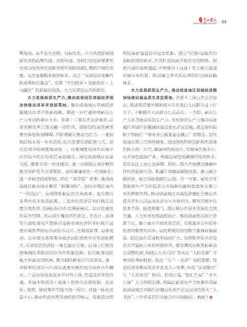 营中心,推动形成向西开放的协同格局。探索建设西 才池”。(作者系四川省社会科学院院长、教授)