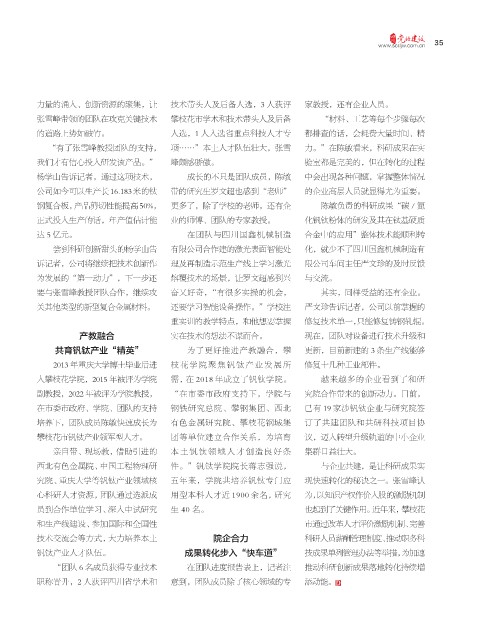 培养下,团队成员陈敏快速成长为 有色金属研究院、攀枝花钢城集 订了共建团队和共研科技项目协