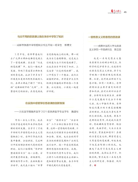 —川北医学院临床医学 2021 级临床医学专业学生 魏建桉 涩的理论,而是我们身处其中