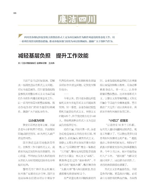 四川省各级纪检监察机关将整治形式主义为基层减负作为抓作风建设的常态化工作,以