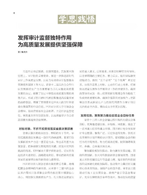 对标对表,不折不扣贯彻落实省委决策部署 一系列重大任务和重点举措。四川审计充分发挥审