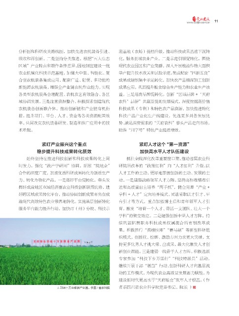 农业机械化科技示范基地,加强大中型、智能化、复 单产提升技术攻关和试验示范,集成配套“四新五良”