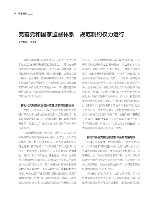健全完善,基本完成了“立梁架柱”的历史任务,迈 行之有效的党和国家监督体系。但要清醒地认识到,