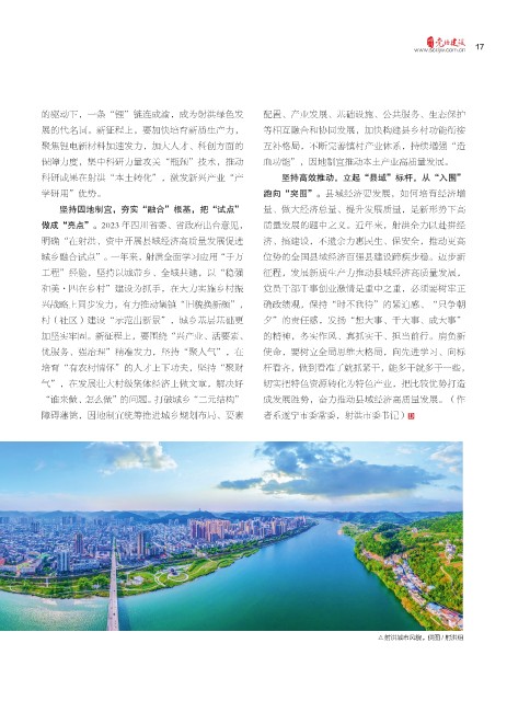 做成“亮点”。2023 年四川省委、省政府出台意见, 质量发展的题中之义。近年来,射洪全力以赴拼经