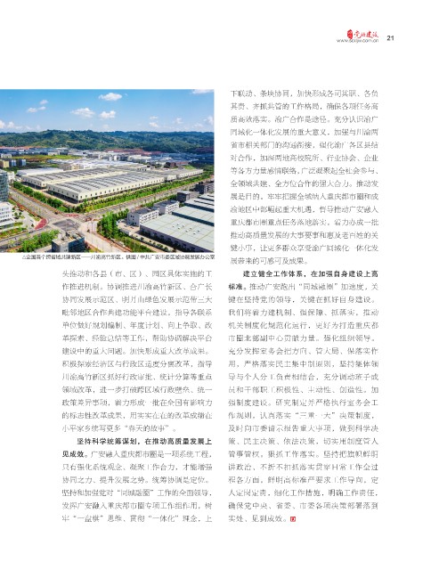 作推进机制。协调推进川渝高竹新区、合广长 标准。推动广安跑出“同城融圈”加速度,关