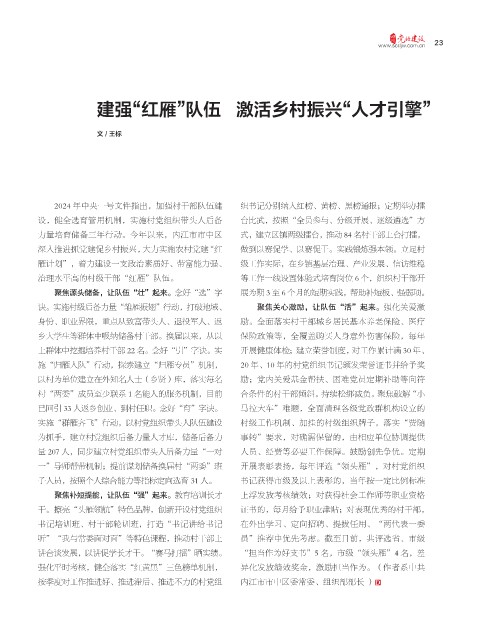 诀。实施村级后备力量“雏雁振翅”行动,打破地域、 聚焦关心激励,让队伍“活”起来。强化关爱激