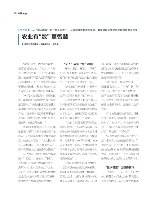 介绍,“这个数字农业物联网平台可 点工作之一。旌阳区智慧农业管理 作为地地道道的庄稼汉,周述