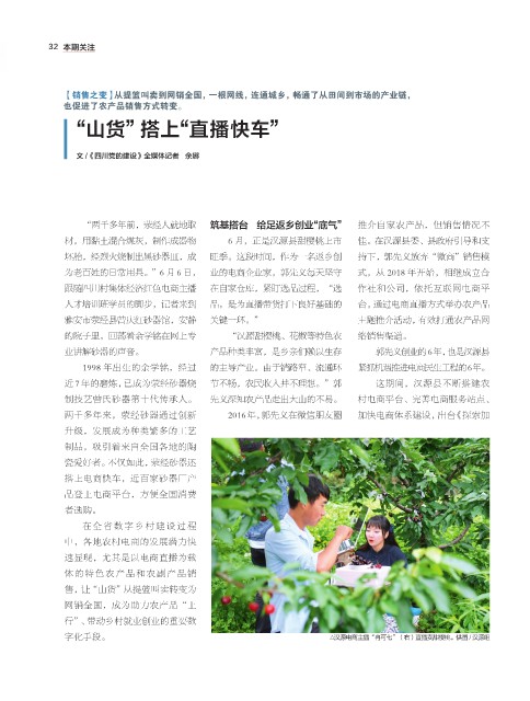 的院子里,回荡着余学铭在网上专 “汉源甜樱桃、花椒等特色农 络销售渠道。