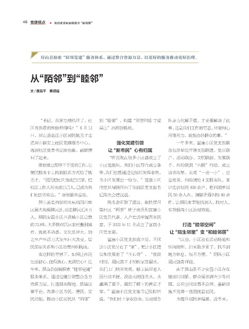 46 党建视点 ● 党的建设制度微改革“新观察”