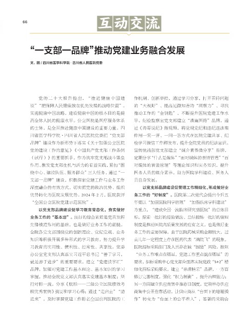 深度融合的有效方式,切实把党的政治优势、组织 以党支部品牌建设促管理工作精细化,形成做好业