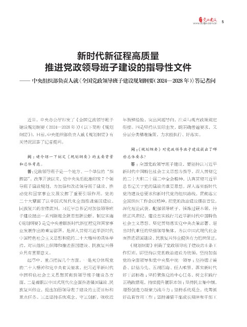 — 中央组织部负责人就《全国党政领导班子建设规划纲要(2024—2028 年)》答记者问