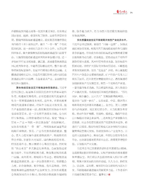 组织体系,做大做强做优西部陆海新通道四川运营平 竞争新基地,尽快成为带动西部高质量发展的重要增
