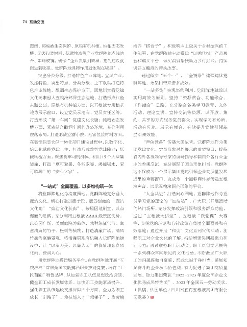打造形成“第一车间”党建文化长廊;纯粮固态发 约、共享的方式服务党员群众,实现学习有场所、
