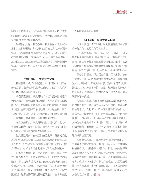 保护和国家考古遗址公园建设。健全考古出土文物管 交流活动。(作者系四川省文化和旅游厅党组成员,省