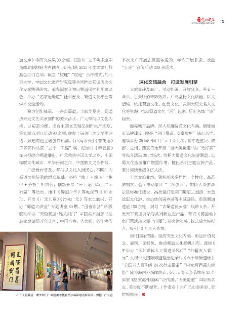 核,以蜀道为媒,出台主题文艺精品创作生产规划, 擦亮城市品牌。深入挖掘蜀道文化内涵,赋能城