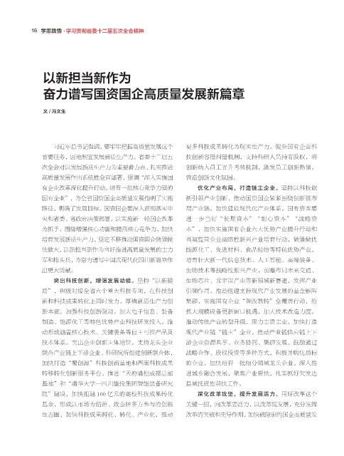 路径,明确了发展目标。国资国企要深入贯彻落实中 局产业链,加快建设现代化产业体系。国有资本要