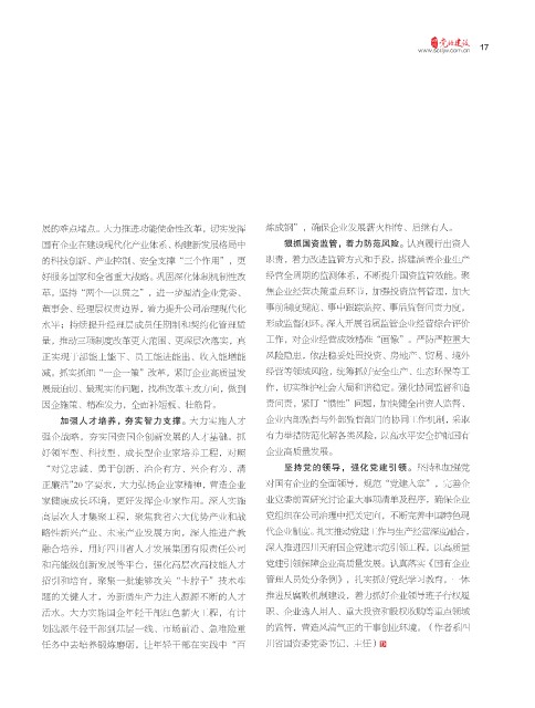 强企战略,夯实国资国企创新发展的人才基础。抓 有力举措防范化解各类风险,以高水平安全护航国有