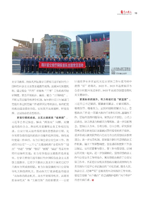 想主题教育、党史学习教育以及正在开展的党纪学 际工作中,真正把公安机关思想政治建设成效转化为