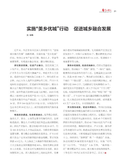实施“美乡优城”行动 促进城乡融合发展