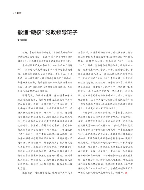 纲要》),对各级党政领导班子建设作出重要部署。 配备,增强整体功能,防止结构“硬”、功能