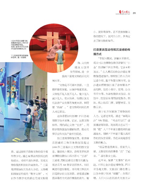 拟拼接后形成的“数字文物”,可 打造数字化交互场景,游客通过触 以各种数字技术“破圈”:在都江