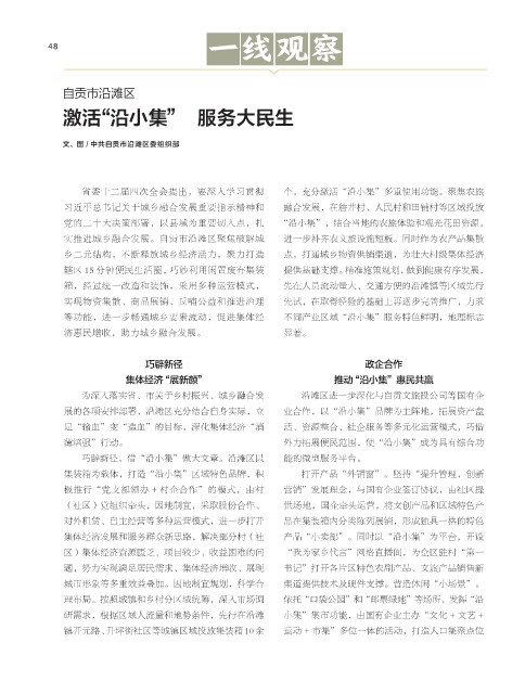 巧辟新径,借“沿小集”做大文章。沿滩区以 能的微型服务平台。