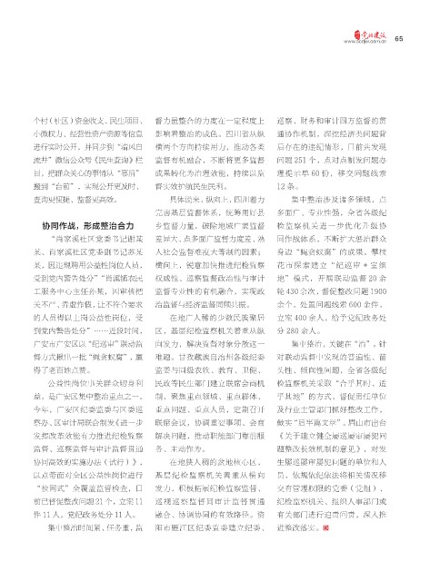 小微权力、经营性资产资源等信息 影响着整治的成色。四川省从纵 通协作机制,深挖经济类问题背
