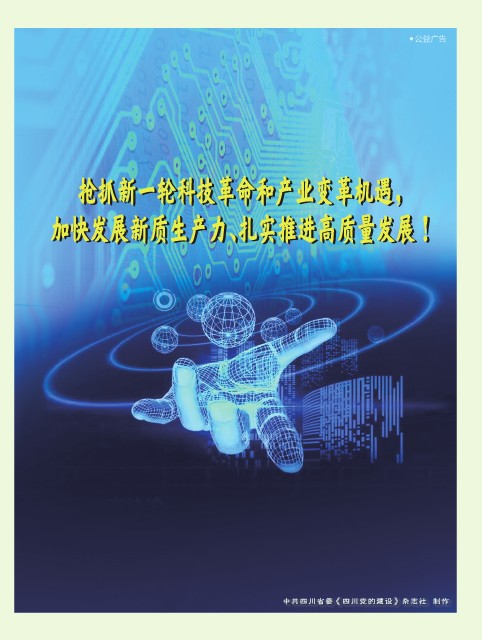 公益广告 ● 抢抓新一轮科技革命和产业变革机遇, 抢抓新一轮科技革命和产业变革机遇, 加快发展新质生产力、扎实推进高质量发展 加快发展新质生产力、扎实推进高质量发展 ! ! 中共四川省委《四川党的建设》杂志社 制作