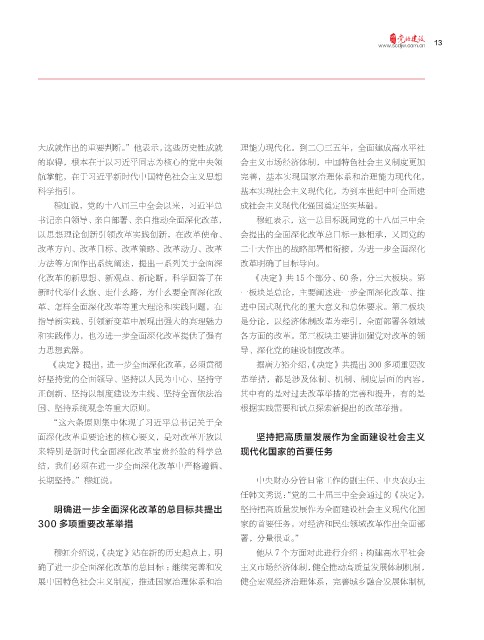 方法等方面作出系统阐述,提出一系列关于全面深 改革明确了目标导向。