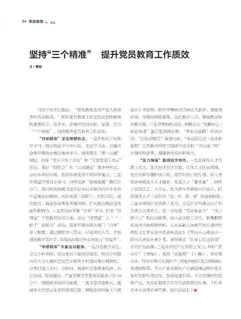 “目标精准”坚定理想信念。一是多形式开展集 动、“红色讲解员”演讲比赛、“永远跟党走·奋进新