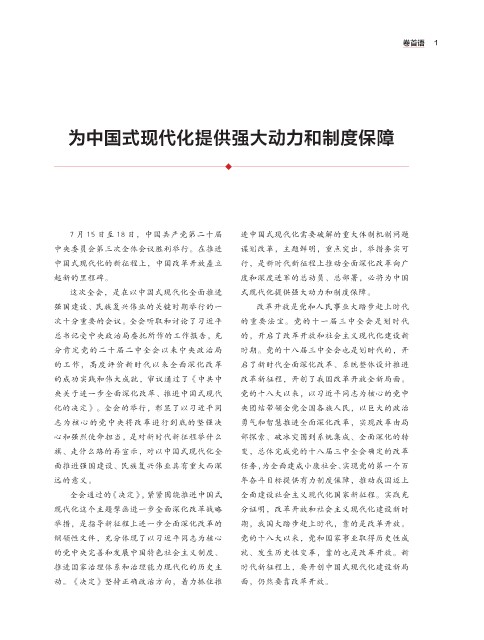 这次全会,是在以中国式现代化全面推进 式现代化提供强大动力和制度保障。